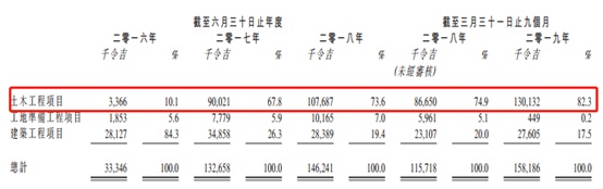 土木工程项目为公司的主要收入来源。截至2018年6月30日止年度,土木工程项目的收益为107.69百万令吉,占总收益比重的73.6%;截至2019年3月31日止9个月,土木工程项目的收益为130.13百万令吉,占总收益比重的82.3%。