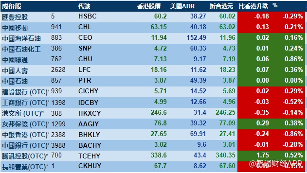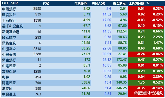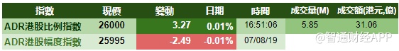 智通财经APP获悉,隔夜港股ADR指数方向不是太明确,按比例计算,收报26000点,微涨3.27点。