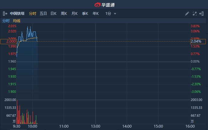 智通财经APP获悉,中国铁塔(00788)发布公告称,上半年净利润为25.48亿元,同比增长110.6%。截至10时07分,涨2.55%,报2.01港元,成交额4.42亿港元。