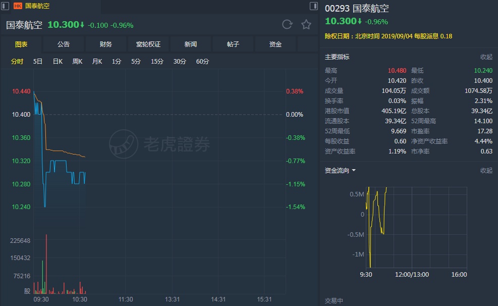 该行指出,国泰业绩受到货运业务疲弱影响,但成本控制较预期好,同时客运收益率符合预期,但受到货运需求疲弱及客运收益率低企影响,该行将国泰今年全年盈利预测下降10%-21%,当中估计2019年全年将扣除特别殊目纯利40.96亿港元。