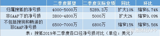 值得注意的是,若采用非GAAP指标,则净亏损降至5000万,但仍高于指引。不过,若剔除搜狗和畅游的相关业务,则搜狐在非GAAP指标下的净亏损则同比、环比均有所降低,且落于指引区间内。