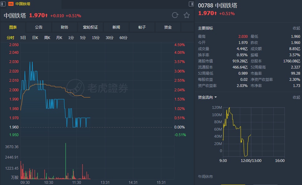 该行表示,中国铁塔上半年收入按年增长7.5%,若调整非电信业务的收入变化则为增长8.2%。EBITDA按年增长5.1%,与该行预期一致。塔楼收入增长11%,预料下半年收入增长将加速至11.8%。虽然上半年的资本开支没有如预期般有所减少,但仍然不必担心。新塔需求短期内非常有限,该行维持今年资本开支185亿元人民币的预测,但公司指标今年资本开支达300亿元人民币,预期管理层将于第四季下调资本开支指标。
