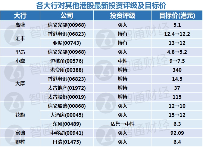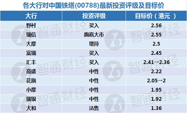 一,各大行对中国铁塔(00788)最新投资评级及目标价: