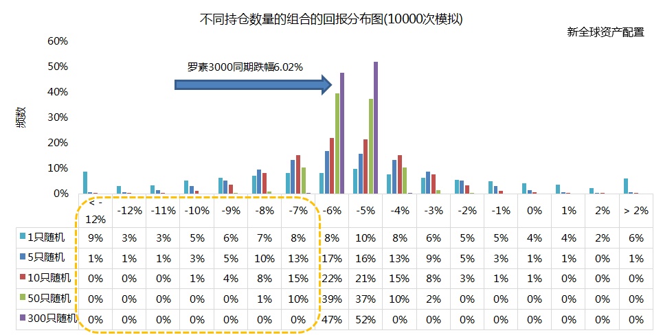 随机持有5只股票,在6天的持续下跌中,跑输罗素3000的历史概率有34%;