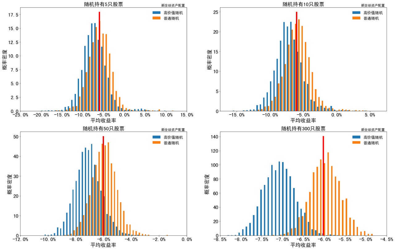 随机持有300只高价值股票,跑输罗素3000的概率有99%。