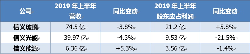 智通财经APP了解到,于8月7日,信义玻璃发布2019年上半年业绩称,公司实现营收74.5亿港元(单位下同),同比下滑3.8%,不过股东应占利润达到了21.2亿元,同比增长5.8%。信义光能2019年上半年实现了收益39.97亿港元,同比减少4.3%,股东应占利润为9.53亿港元,同比减少21.5%。信义能源发上半年的期内收益为6.36亿港元,同比增长5.3%,股东应占利润为3.56亿港元,同比减少1.4%。