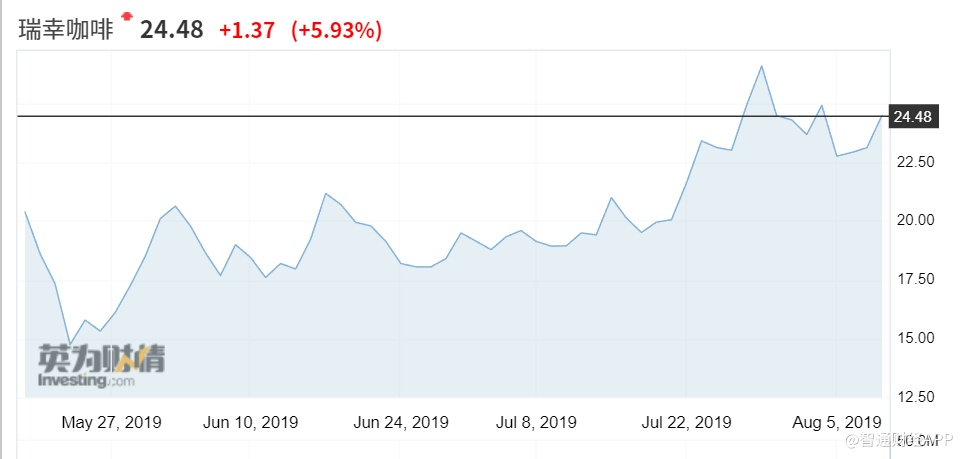 智通财经APP获悉,周四,瑞幸咖啡(LK.US)股价大幅走高。截至发稿,涨5.93%,报24.48美元,成交额达4360.93万美元。