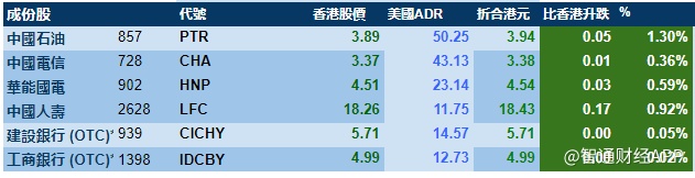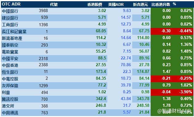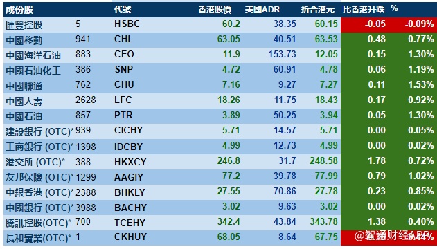 智通财经APP获悉,隔夜美股较为强势,隔夜港股ADR指数向上,按比例计算,收报26229点,涨108.98点。汇丰控股收报60.15元,较港收市跌0.05元;腾讯控股收报343.78元,较港收市涨1.38元。