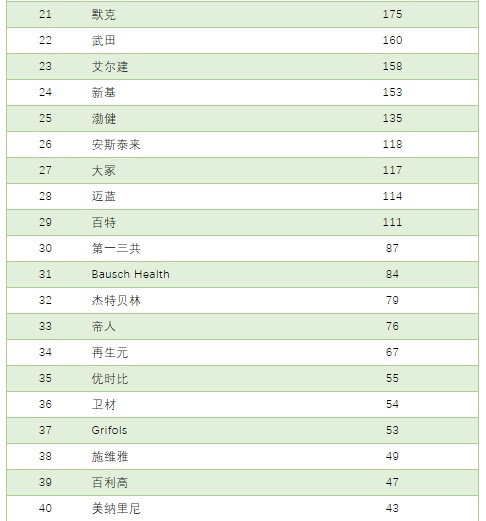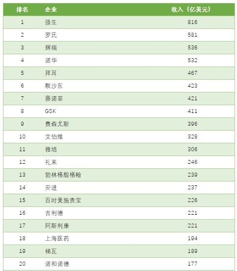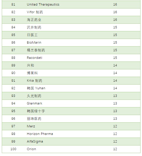 全球药企百强完整榜单: