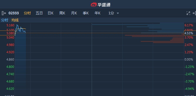 智通财经APP获悉,长城汽车(02333)1-7月累计销量突破55万辆,同比增长5.33%。消息刺激股价上扬,截至9时50分,涨4.53%,报价5.08港元,成交额3199万。