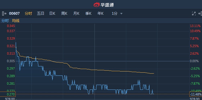 智通财经APP获悉,丰盛控股(00607)遭剔除MSCI中国指数,纳入MSCI中国小型股指数,该股昨日暴涨32%后,现大幅回吐逾11%,截至14时52分,跌11.48%,报价0.27港元,成交额3428万。