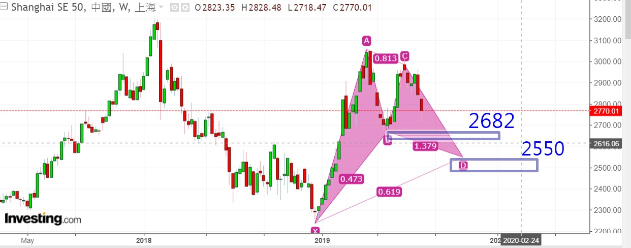 首先讨论上证50的走势,上证50目前周线图中出现双顶走势,目前上证50有机会先试2682点,一旦跌穿或会跌至2550。