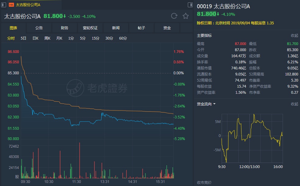 该行指出,太古上半年业绩表示,公司离岸业务看似复苏,如国泰(00293)及太古地产(01972)的亮眼的中期业绩,但实际上,公司租船业务方面仍然供过于求,中期录6亿港元净亏损,租赁率年同比下降16%。公司派息年同比增长13%至每股1.35港元,但期内每股盈利增长40%,变相派息比率下降至46%,去年同期为58%。但管理层解释,下半年前景虽更具挑战,派息比率将恢复至约50%。