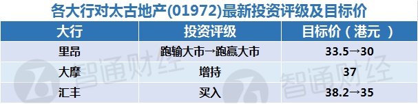 5,各大行对太古地产(01972)最新投资评级及目标价: