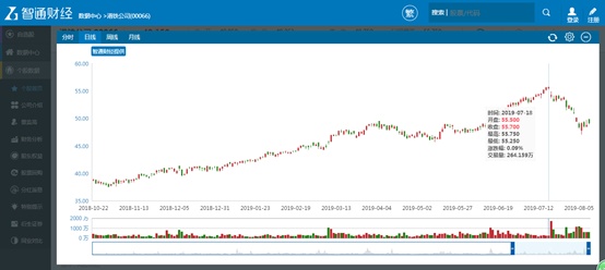 虽然业绩较大幅度下滑,但是公司股价于8月9日高开+2.26%,在恒指震荡下行收跌至-0.69%后,公司股价仍收涨+0.82%。期间各大机构也给出看好的报告,其中花旗表示相信港铁可获有意寻找资金避难所的投资者所垂青,将其目标价由52港元调高至55港元,维持“买入”评级;野村表示港铁零售投资组合较具防守性,长线前景仍然稳固,上调港铁目标价由53.5港元升至56.6港元,维持“买入”评级;里昂也将目标价由49港元上调至50港元,评级由“沽售”升至“跑输大市”。