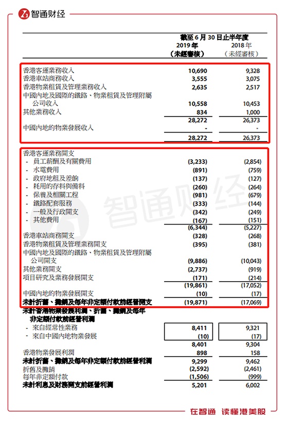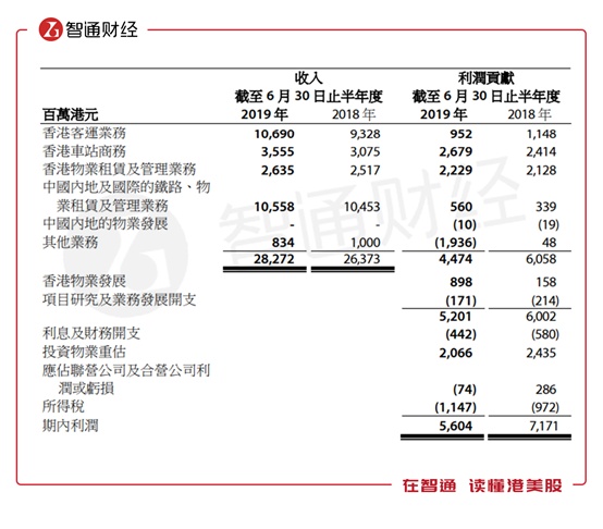 其中沙田项目中作出的20亿元拨备,就是列在综合损益表中的“其他业务开支”,因此才出现了其它业务亏损19.36亿元的情况。若不计及与沙田至中环线有关的 20 亿元和 South Western Railway 专营权 4.36 亿元的拨备,港铁公司股东应占经常性利润及股东应占基本业务净利润其实是分别增加了13.8%和 26.4%。