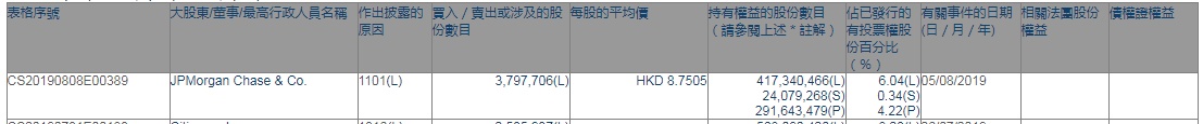 智通财经APP获悉,联交所最新资料显示,8月5日,中国财险(02328)获摩根大通增持379.77万股,每股作价8.75港元,总值约为3322.98万港元,最新持股数目约为4.17亿股,最新持股比例为6.04%。