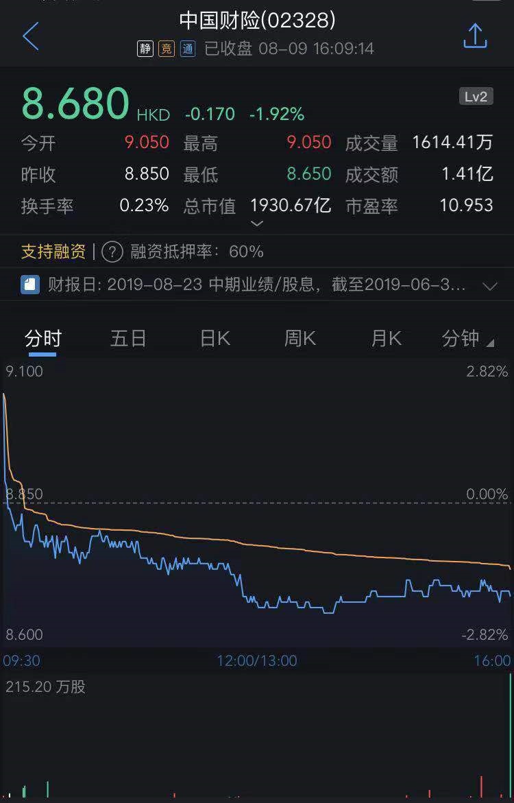 截至今日收盘,中国财险跌1.92%,报8.68港元。