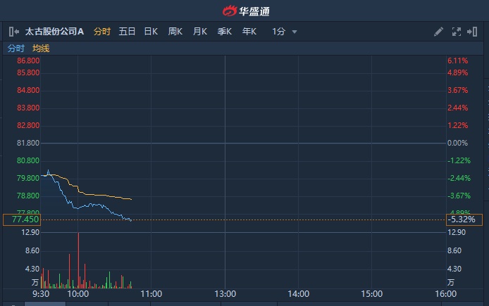 智通财经APP获悉,太古A(00019)遭多家大行下调目标价,且旗下国泰航空近期风波不断。太古A早盘低开低走,现跌5.26%,报77.5港元,成交额7825.3万港元,接近年内新低77.2港元。
