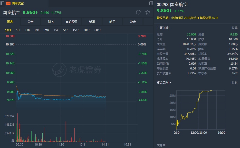 该行指出,估计国泰下半年客运收益率年同比下降4.3%,但客运量增长7.3%,估计可录得15.5亿港元盈利。若下半年客运收益率年同比下降8%,以及客运量持平,则将会录得13亿港元净亏损。国泰现价市帐率为0.6倍,预期公司可保持盈利能力,不过短期内面对不明朗因素,或许需要等待较好的入市时机出现。