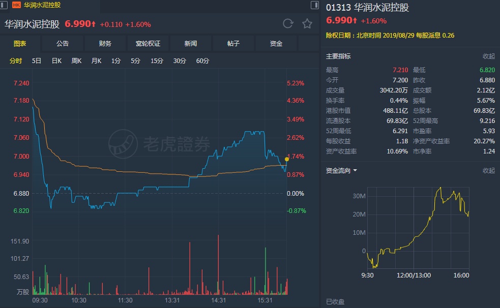 智通财经APP获悉,大摩发表报告称,华润水泥控股(01313)管理层将上半年销量下跌归因于天气因素,而非结构性需求下跌,并表示若下游出货表现回复正常,第四季会加价。该行指出上半年水泥价格按年下跌4.3%,撇除汇率因素实际每吨价格按年提升4.7元人民币,公司股息率逾7%较吸引,重申其“增持”评级,目标价9.2港元。