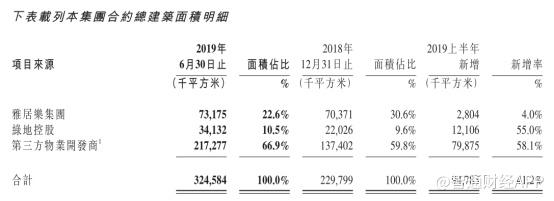 合约面积方面,来自两大股东雅居乐集团(03383)及绿地控股(600606.SH)的合约面积分别达7320万平方米及3410万平方米,较去年底增长4.0%及55.0%,占总合约面积的33.1%。