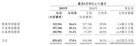 整体细分业务来看,2019年上半年,公司物管服务收入达12.28亿元,同比增长63.6%;外延服务收入达8.08亿元,同比增长40.3%;社区增值服务达2.06亿元,同比增长157.9%。