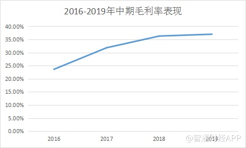 除此之外,公司毛利率也逐年提升。截至2019年6月30日,公司实现毛利8.3亿元,同比增长62.6%;毛利率为37.0%,同比增长0.7个百分点;2016-2019年间,公司毛利率均处于上升态势,增速略出现放缓。