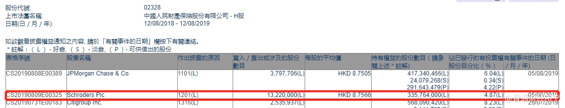 智通财经APP获悉,联交所最新资料显示,8月5日,施罗德减持中国财险(02328)1322万股,每股平均价8.76港元,涉及总金额约为1.16亿港元。减持后最新持股数目约为3.36亿股,最新持股比例为4.87%。