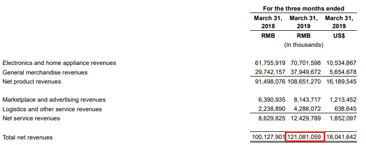 回顾第一季度,京东的业绩表现十分亮眼,营业收入和利润均超过市场预期。其中,营收同比增长21%至人民币1211亿元,高于预期的1201亿元;2015年至2018年的营收年复合增长率(CAGR)为37%,同期亚马逊(AMZN.US)的CAGR为30%。