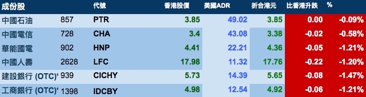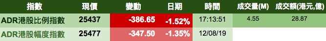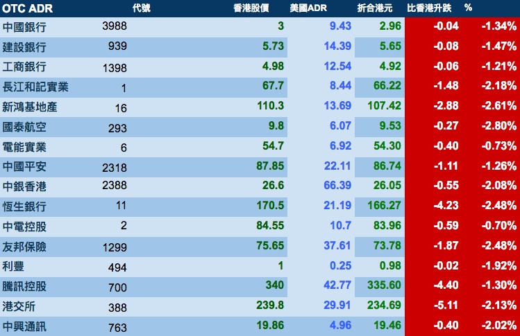 智通财经APP获悉,周一美股大幅下挫,拖累港股ADR指数全日偏软,按比例计算,收报25437点,跌386.65点。大型蓝筹股全线偏软,汇丰控股收报57.73元,较港收市跌1.32元;腾讯控股收报335.6元,较港收市跌4.4元。