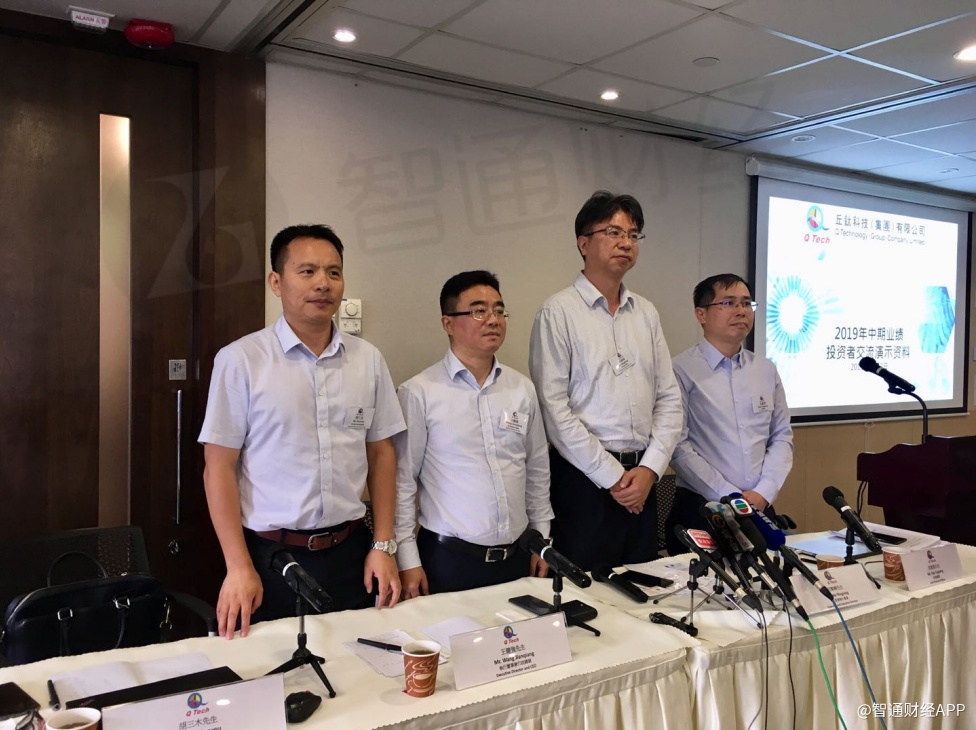 8月12日,丘钛科技(01478)在香港举行2019年中期业绩发布会,公司主席兼执行董事何宁宁、执行董事兼行政总裁王健强、财务总监范富强、执行董事兼销售副总裁胡三木出席了本次业绩会。