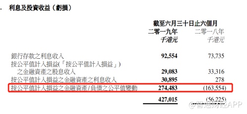 财报显示,利福国际利息及投资收益大幅增长,主要是因为公司按公允价值计入损益的金融资产/负债的公允价值变动,在2019年上半年达到2.74亿元,上年同期则为-1.64亿元。