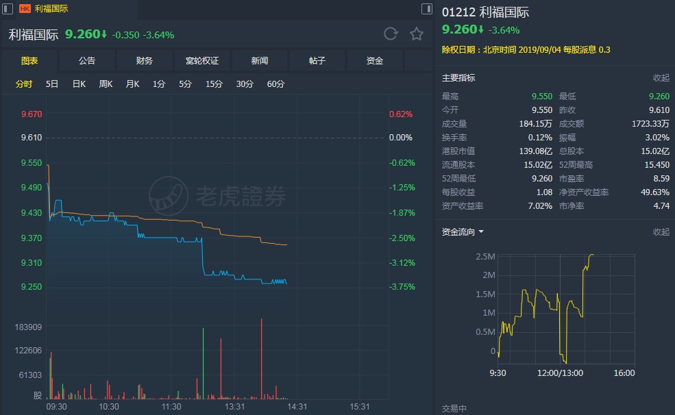 智通财经APP获悉,花旗发表研究报告称,利福国际(01212)上半年核心净利润年同比下降1.5%至9.34亿港元,高于该行预期5%,而整体销售额年同比下降2.4%,符合预期。该行下调对其2019至2021年核心盈利3%、3%及4%,以反映销售下降及息税前利润率(EBIT margin)预测,目标价由14港元调低至12.5港元,其现价相当于2019年预测市盈率10倍,较资产净值折让55%,股息率6.2厘,为该行覆盖的香港零售股中最高,维持“买入”评级。