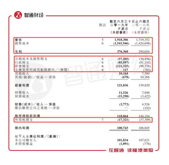 鸿腾盈利能力下滑幅度,并非表面数据展现的那么小。智通财经APP了解到,虽然毛利录得大幅增长,但是公司的各项费用涨势更凶,其中分销成本及销售开支由于收购BelkinInternational,导致同比增加90%至5700万元;行政开支除了收购BelkinInternational外还有人才挽留计划的实施,导致同比增加68.6%至8600万元; 研发开支则是因为持续投入400G光通讯及汽车应用产品的研发,同样同比较大幅度增长34.4%至1.21亿元。再加上财务方面由去年同期的452.6万元盈利转为377.2万元亏损,导致公司税前利润大幅下滑18.1%至1.18亿元。