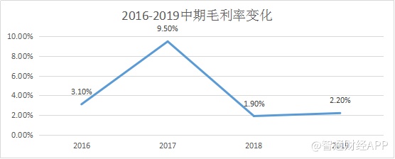 2019年上半年,公司实现毛利率2.2%,较去年同期微增0.3个百分点。智通财经APP了解到,公司此次毛利率仍维持在较低水平,一方面是因公司为提高销售规模采取了较进取的价格策略,另一方面,原材料成本也是影响公司毛利率的重要因素之一。