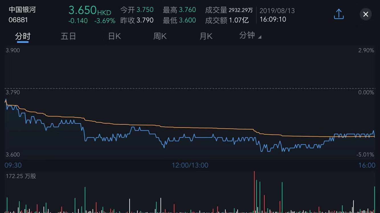 截至今日收盘,中国银河(06881)跌3.69%,报3.650港元。