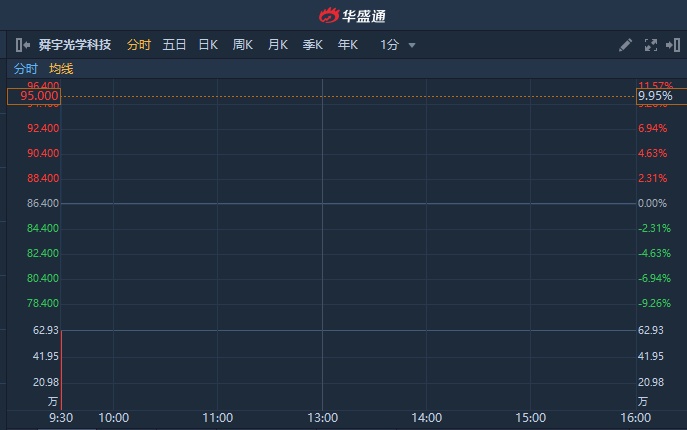 智通财经APP获悉,舜宇光学(02382)昨日发布中期业绩,净利较去年同期增加约20.4%至约14.32亿元。截至9时23分,涨9.95%,报95港元,成交额5980.94万港元。