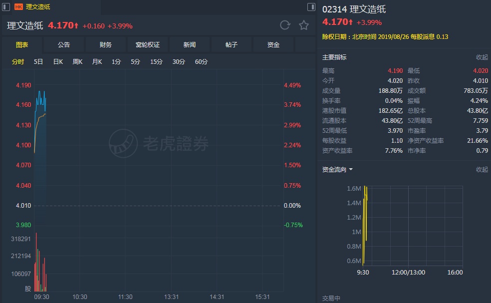 该行指出,公司因为需求疲软拖累包装纸销量下滑,包装纸售价、吨净利同比显著下滑,并且生活纸量增价下跌,吨净利亦下滑显著。净负债率同比下滑20ppt至38%,较18年底改善13ppt。经营现金流同比大增6.11亿至18.86亿港元,股息率具备一定吸引力。