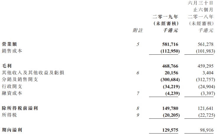 远的不说,就说今年的两期财报,3月11日夜间发布的2018年业绩显示,该公司营业额同比增长30.8%至11.76亿元;纯利同比增长38.3%至2.31亿元;8月12日,2019年中期,实现营业额约5.82亿元,同比增长3.6%;期内溢利约1.3亿港元,同比增加31.0%。