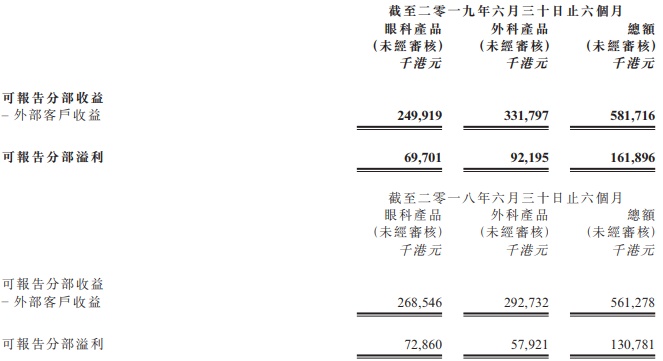 而期内,该公司眼科及外科产品业务的营业额贡献分别为43.0%及57%。