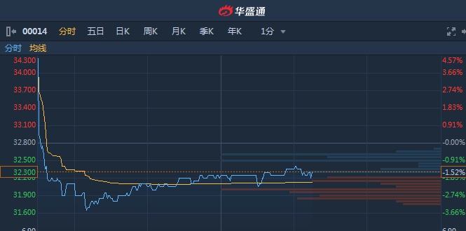 值得注意的是,该股盘中低见31.6港元,创逾两年半新低。