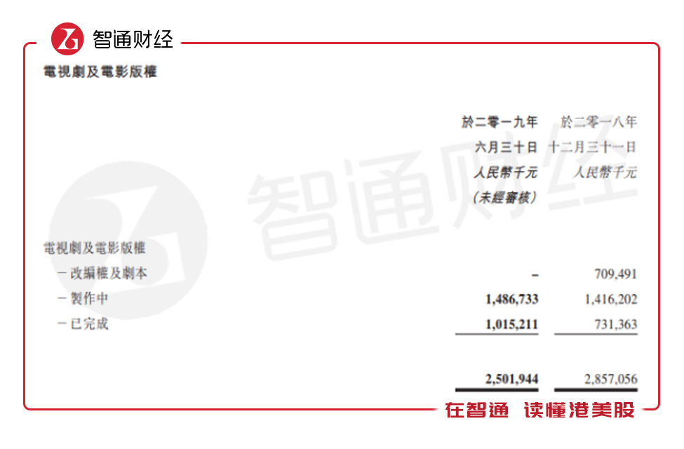 上半年,阅文有70部文学作品改编权被公司授予给第三方,较去年同期有所增长,实现版权运营收入13.08亿元,同比增长达280.3%。此外,上半年,该公司的电视剧及电影版权,制作中的有14.87亿元,已完成的有10.15亿元,改编权及剧本(上半年列入存货)7.64亿元,合计32.66亿元,较2018年年度增长14.3%。