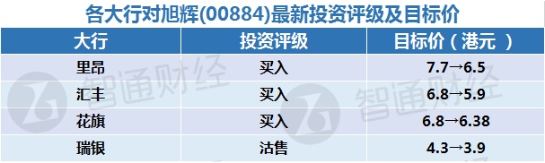 三、各大行对旭辉(00884)最新投资评级及目标价:
