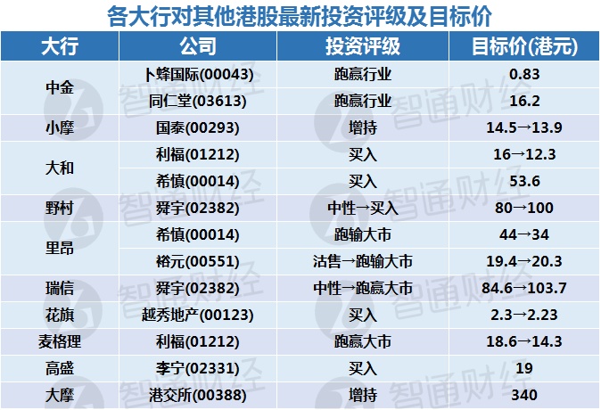 二、各大行对理文造纸(02314)最新投资评级及目标价: