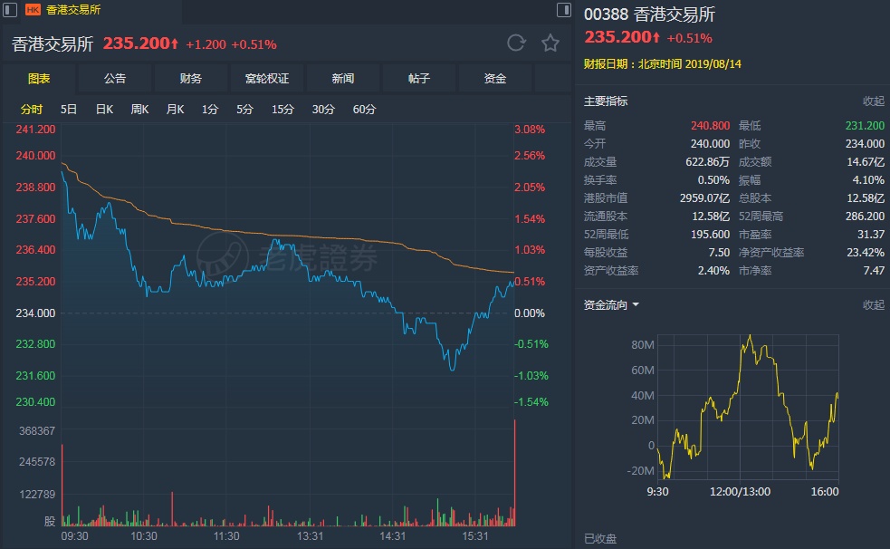 智通财经APP获悉,大摩发表报告表示,港交所(00388)公布今年第二季每股盈利,高于该行原预期8%,也高于市场预期4%,主要受益于强劲投资收入及结算业务表现,相信短期日均成交量(ADV)、每股盈利及股价走势要视乎香港经济发展。该行重申对港交所“增持”评级,仍是最受惠于外资流入中国资本市场的主题股份,维持目标价340港元。