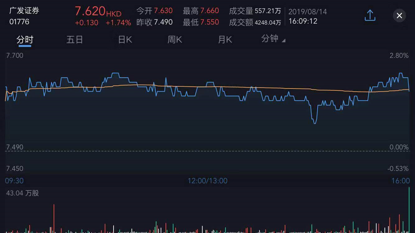 截至今日收盘,广发证券(01776)涨1.74%,报7.620港元。