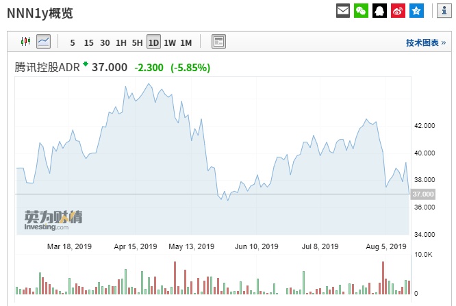 另外,今日美股开盘,截至北京时间22:10,腾讯控股美股ADR(TCEHY.US)下跌3.83%,报41.7美元;腾讯大股东Naspers(NPSNY.US)股价下挫4.07%,报44.08美元。