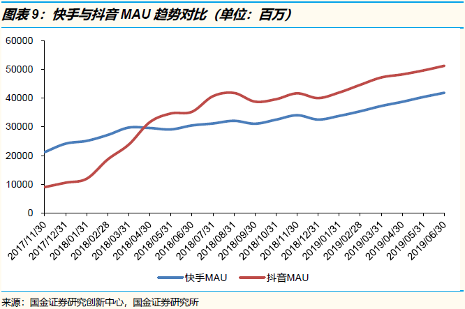 在抖音崛起之前,快手是当之无愧的中国第一短视频App,它的“农村包围城市”的发展道路、“真实蛮荒”的内容风格,曾经被大批投资人和媒体视为教科书。抖音的横空出世,让快手一时被抢去了风头。我们的监测数据显示,从2018年二季度开始,抖音的MAU超过了快手。但是,快手并没有衰落,两家的MAU差距一直稳定在25%以内。抖音的口号是“发现美好生活”,快手的口号是“看见每一种生活”。世上有人喜欢“潮”,就会有人喜欢“真”,所以两家都有生存空间。
