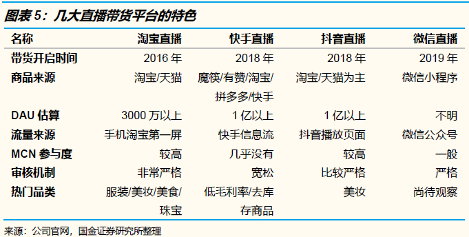 2019年4月,微信静悄悄地开始了直播功能的内测;5月,微信公众号、小程序普遍开启直播功能。近年来,“直播带货”成为了一种新兴广告形式:早在2017年,快手部分播主就开始了带货的尝试;2018年3月,淘宝直播登上手机淘宝第一屏,DAU迅速突破千万;同年,抖音在短视频和直播当中大规模进行电商带货;相比之下,微信已经算后来者了。李佳琦、女神进化论……这些头部KOL可以用一场直播、一个VLOG吸引几千名买家、几百万GMV。按照5-10%的广告货币化率计算,如果微信直播能够创造100亿GMV,就可以新增5-10亿元收入,这并非遥不可及。